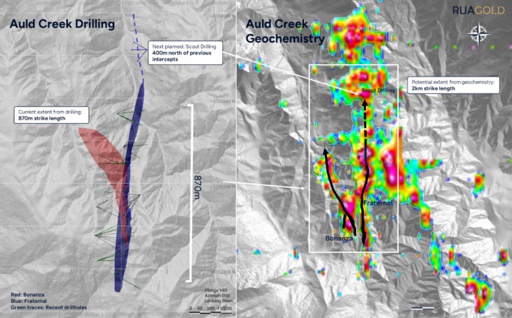 Robert Eckford, CEO of RUA GOLD commented: “Auld Creek continues to be a cornerstone asset for the Company. Ongoing drilling is expanding both the scale and confidence of the mineralized system as we advance toward mine permitting .